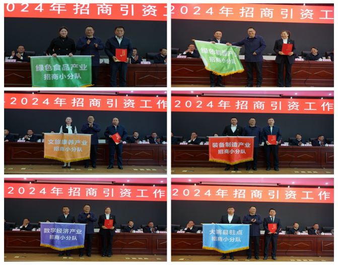 会上,举行了招商小分队“授旗出征”仪式,县委书记王丽平分别为绿色食品、绿色能源、文旅康养、装备制造、数字经济和驻点招商6个招商小分队牵头领导授任务书,为小分队队长授战旗。
