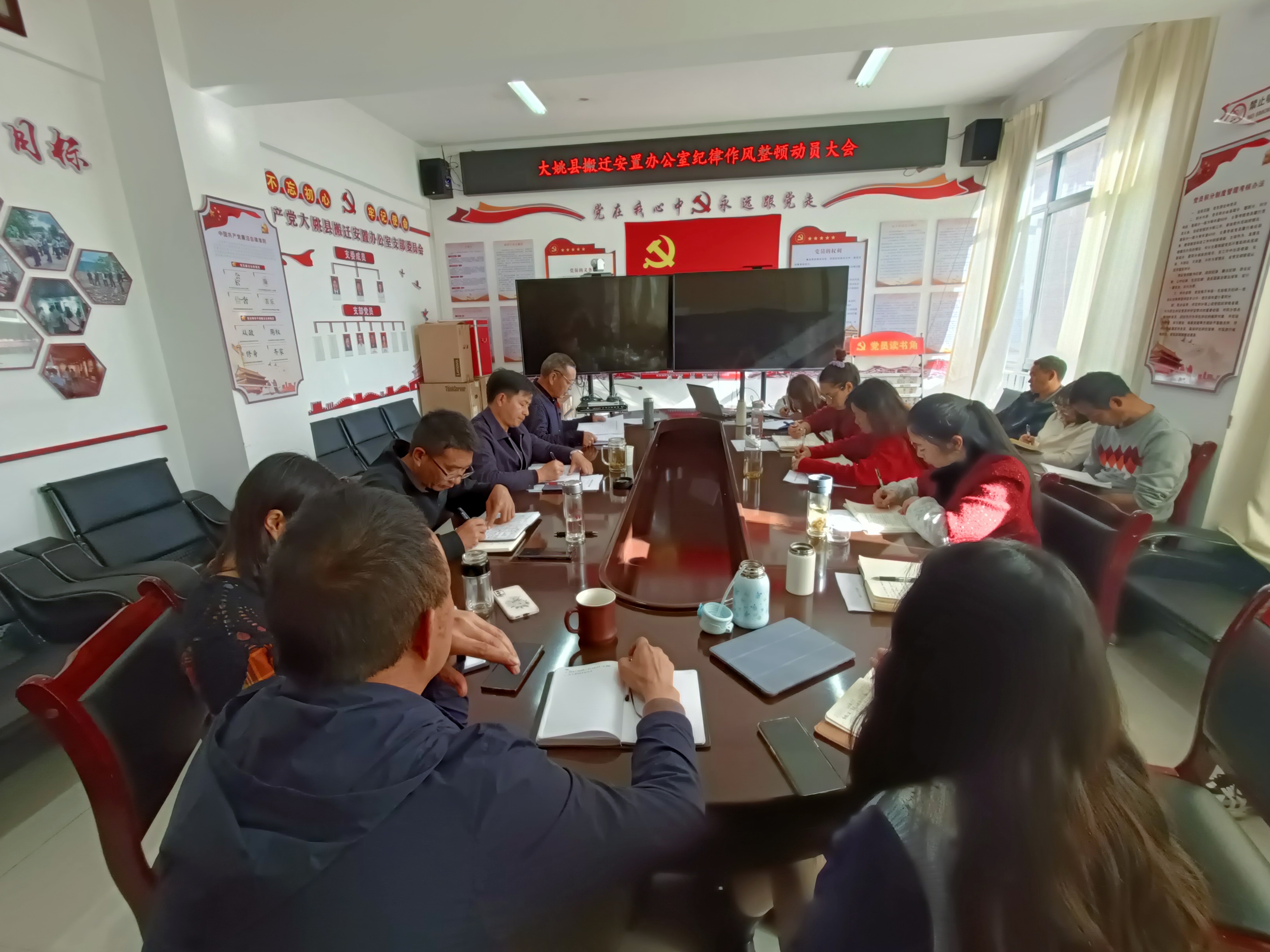 为深入贯彻习近平总书记关于加强党的作风建设的重要论述和重要指示批示精神,巩固拓展学习贯彻习近平新时代中国特色社会主义思想主题教育成果,进一步加强纪律作风建设,激励全办干部职工担当作为、干事创业,2月19日,大姚县搬迁安置办公室召开纪律作风整顿动员大会,领导班子成员、全体干部职工共计16人参加会议。