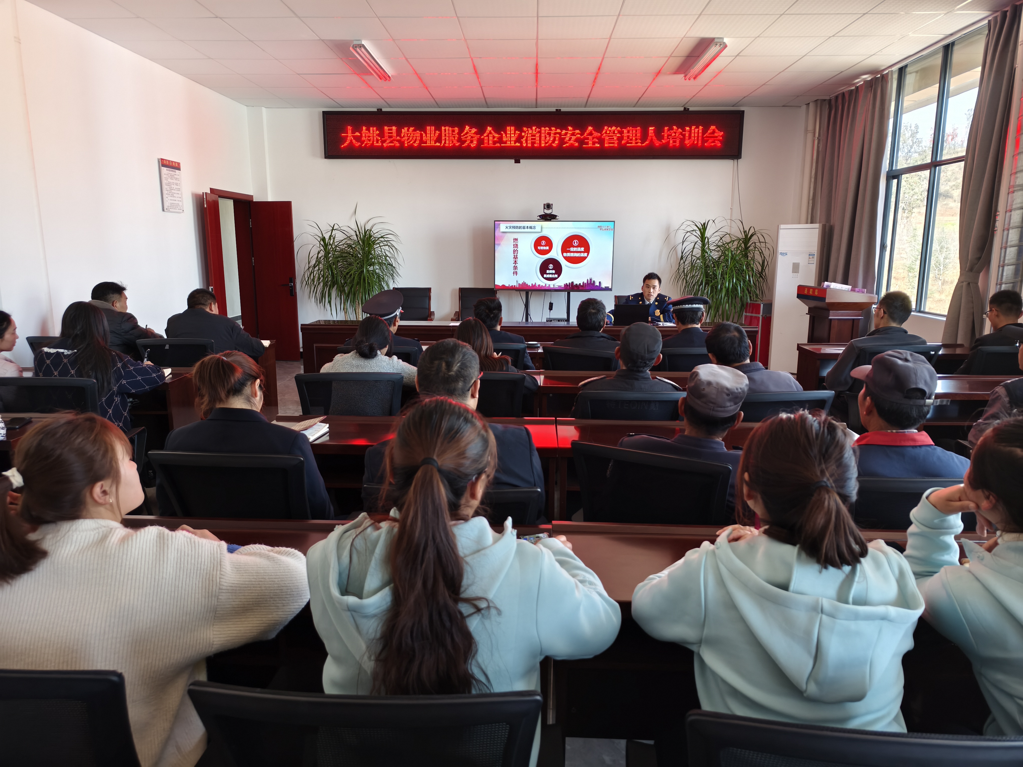 为进一步提升全县物业服务企业消防安全管理水平,坚决防范和遏制群死群伤火灾事故发生,结合消防安全集中除患攻坚大整治行动工作安排。2月27日,大姚县消防救援大队组织全县物业服务企业责任人、管理人召开消防安全集中培训会。