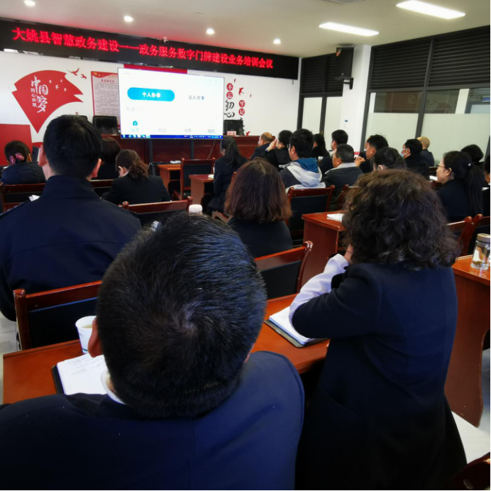 2月28日上午,大姚县政务服务管理局邀请数智政务“一窗研究院”云南片区指导老师到县政务服务中心为全体干部职工及进驻窗口单位首席代表讲解智慧政务服务建设——政务服务数字门牌建设应用业务指引培训,县大数据中心、移动大姚分公司(网络运营)及县国投公司(政务服务大厅建设方)负责领导现场听取了讲解。