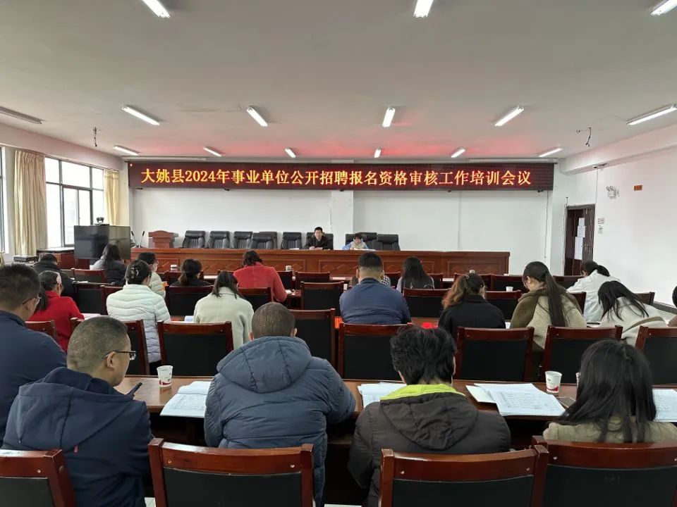2月23日,大姚县人力资源和社会保障局组织召开大姚县2024年事业单位公开招聘报名资格审核培训会议,让全县各招聘单位具体负责资格审查的人员对招聘政策、审核流程等有了更深入的掌握,为2月26日至3月2日开展的大姚县事业单位招聘网上报名资格审查工作奠定了良好基础。