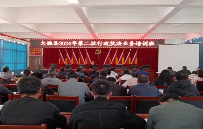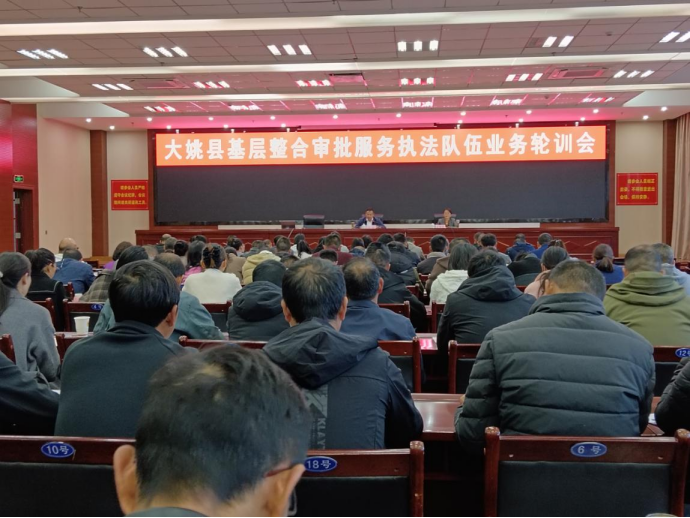 为认真贯彻落实《云南省提升行政执法质量三年行动实施方案》《云南省人民政府关于公布乡镇(街道)行政职权基本目录和赋予乡镇(街道)部分县级行政职权指导目录的决定》和全县基层综合行政执法改革工作要求,提高全县执法人员综合业务能力,提升行政执法水平,保障赋权乡(镇)的执法事项有效承接,压实基层行政执法责任,大姚县于2024年2月28日至3月1日组织全县乡镇明责赋权扩能工作协调联动领导小组成员单位相关人员和12个乡镇分管领导、综合行政执法人员及司法所长共160余人开展基层整合审批服务执法队伍业务轮训。