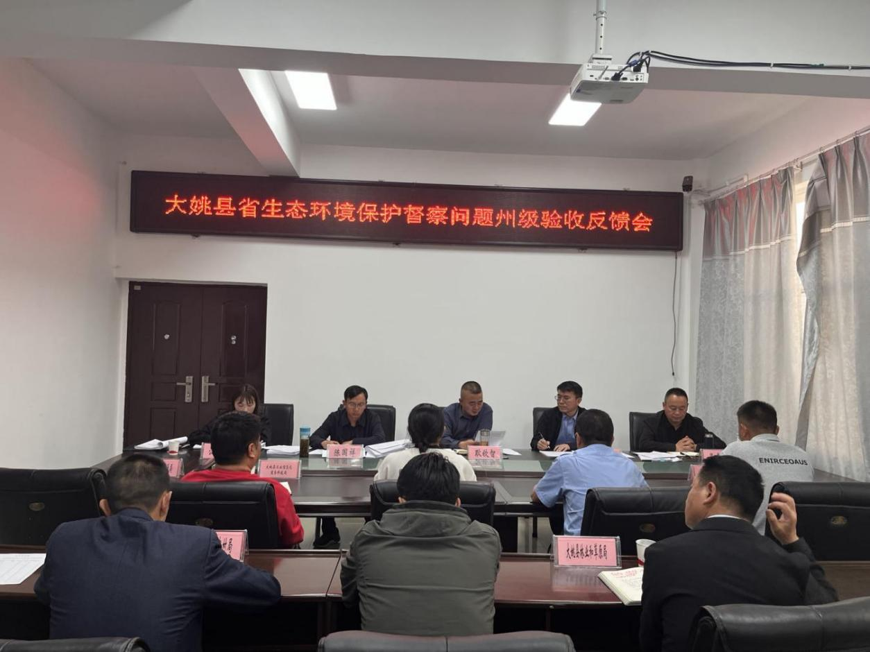 通过实地验收、听取汇报及查阅台账,验收组一致同意大姚县第二轮省环保督察反馈的8个问题通过验收。验收组要求,大姚县要加强各类环保督察反馈问题整改,完成整改的问题要定期进行“回头看”,防止问题反弹。县级有关部门要加强对行业领域内突出生态环境问题的排查整治,加强对群众生态环境投诉举报件的办理,有效化解化解风险隐患。