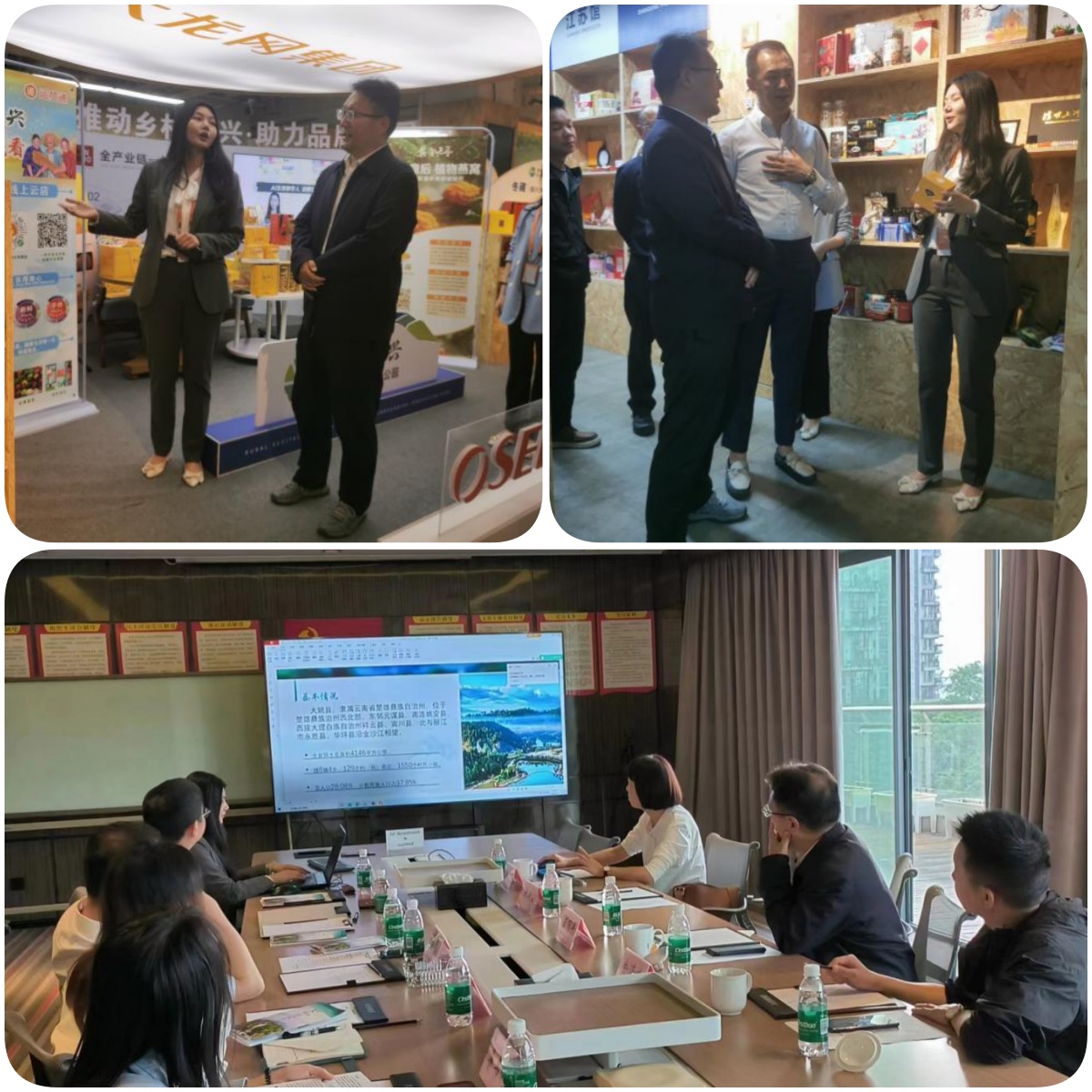 在大龙网科技集团有限公司,考察团一行参观了企业电商产品展厅,随后,双方召开座谈会。会上,企业负责人就大龙网公司经营体系、运维情况等作了详细介绍,县投资促进局局长蔡荣婕重点向企业介绍了大姚数字经济产业园区、冷链物流园区以及产业扶持及奖励政策,并表示目前数字经济产业园已有怡亚通、老虎云等多家知名企业入驻,前景广阔。双方就绿色食品、数字经济产业园电商业务等进行深入交流,初步达成合作意向。王丽平表示,大龙网是跨境电商头部企业,解决了国内企业想做外贸但不知道“卖什么、往哪里卖、怎么卖”的痛点问题,大姚绿色食品资源丰富、体量巨大、区位优越、辐射范围广,双方合作共赢基础深厚,进一步深化合作大有可为,诚挚邀请企业考察团到大姚进行考察洽谈,并希望促成项目落地。
