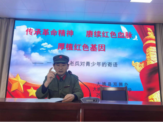 近日,大姚县退役军人事务局联合金龙明德小学开展“传承革命精神赓续红色血脉厚植红色基因”老兵宣讲活动,退役老兵金涛用感人至深的英雄事迹教育引导青少年传承红色基因、厚植爱国情怀。