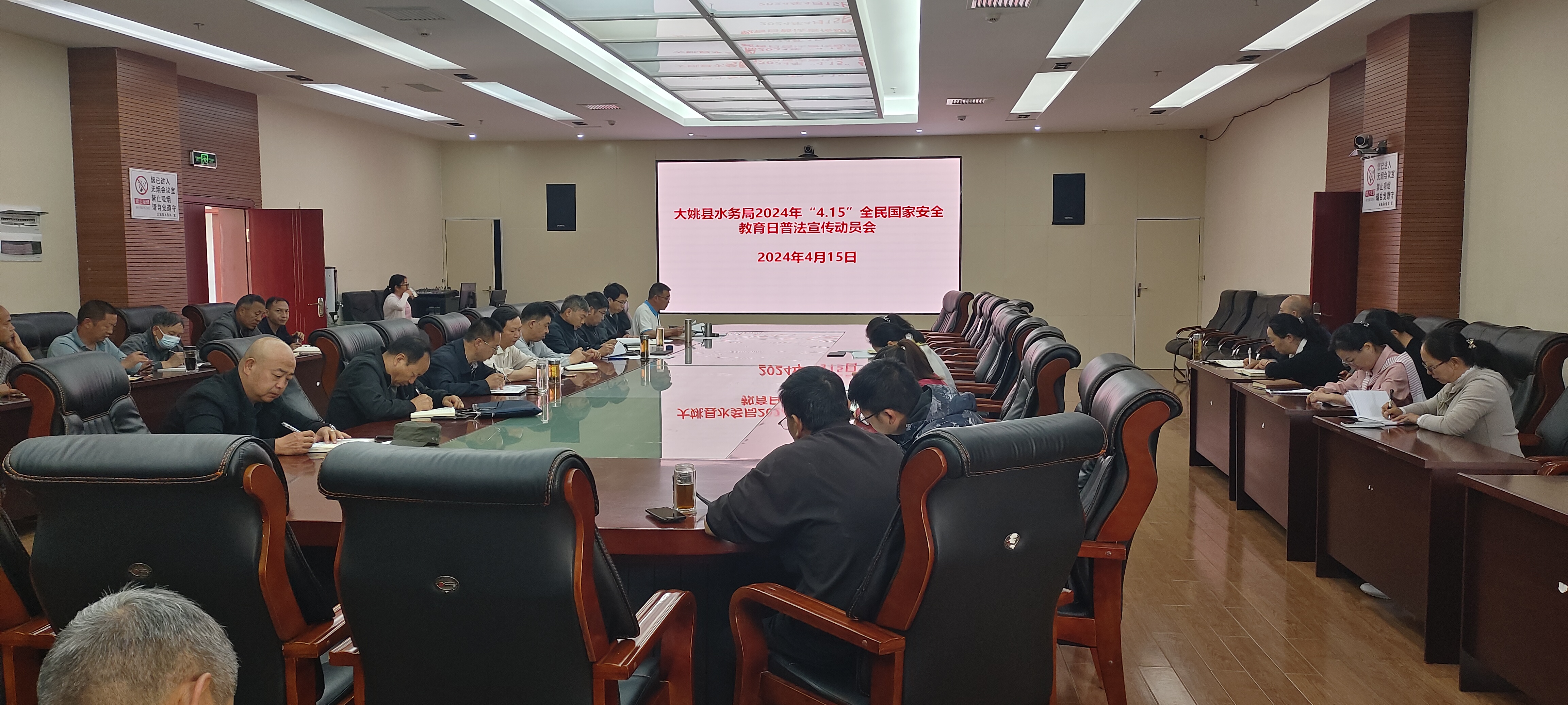 为树牢总体国家安全观,推动国家安全法制宣传教育走深走实,在4月15日第九个全民国家安全教育日,大姚县水务局召开2024年“4.15”全民国家安全教育日普法宣传动员会,多形式组织全体干部职工开展全民国家教育日普法宣传活动。