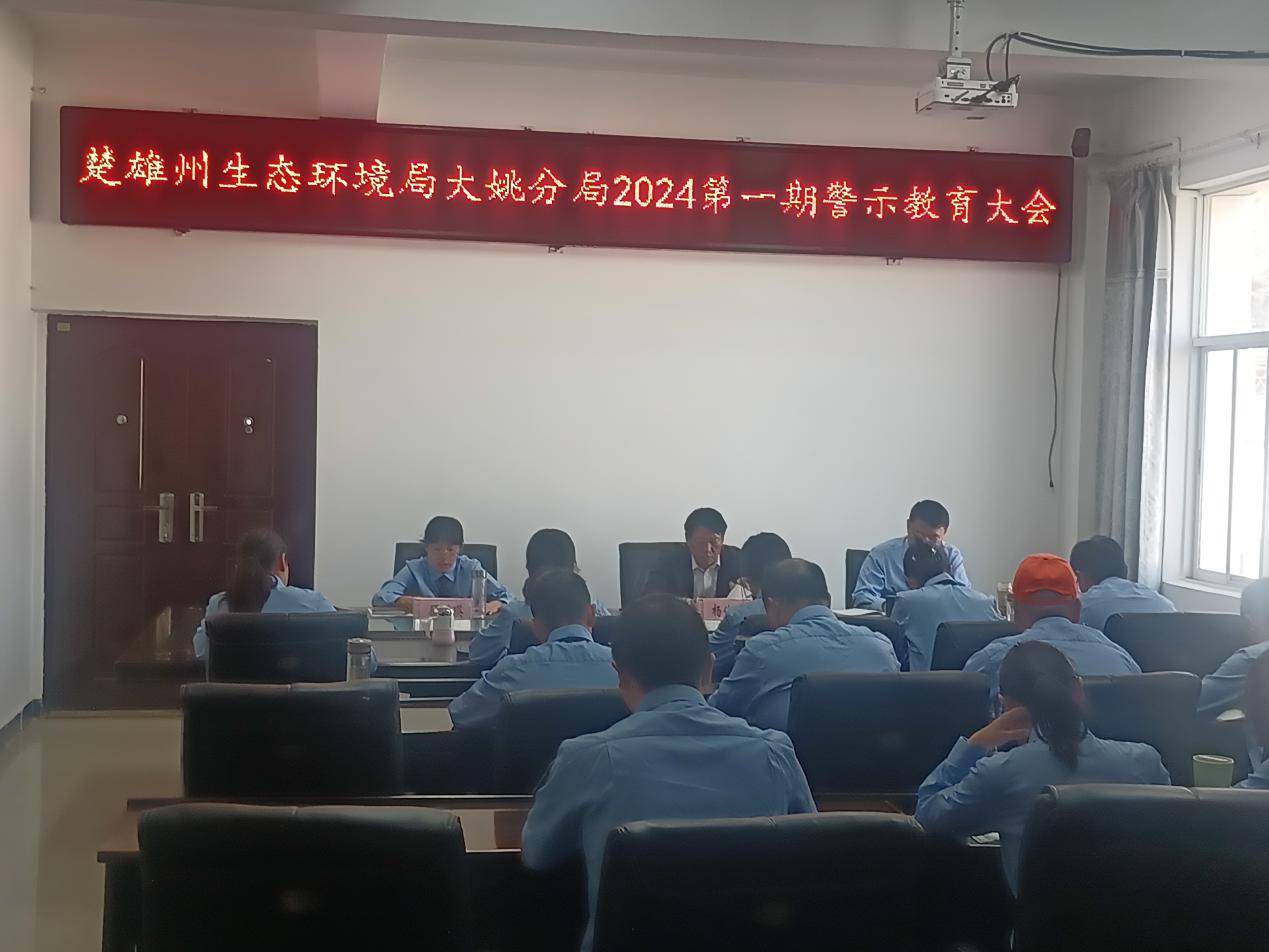 4月23日,楚雄州生态环境局大姚分局召开2024年第一期警示教育大会,县纪委县监委驻县林草局纪检组组长杨佳源到会指导,全体干部职工参加。