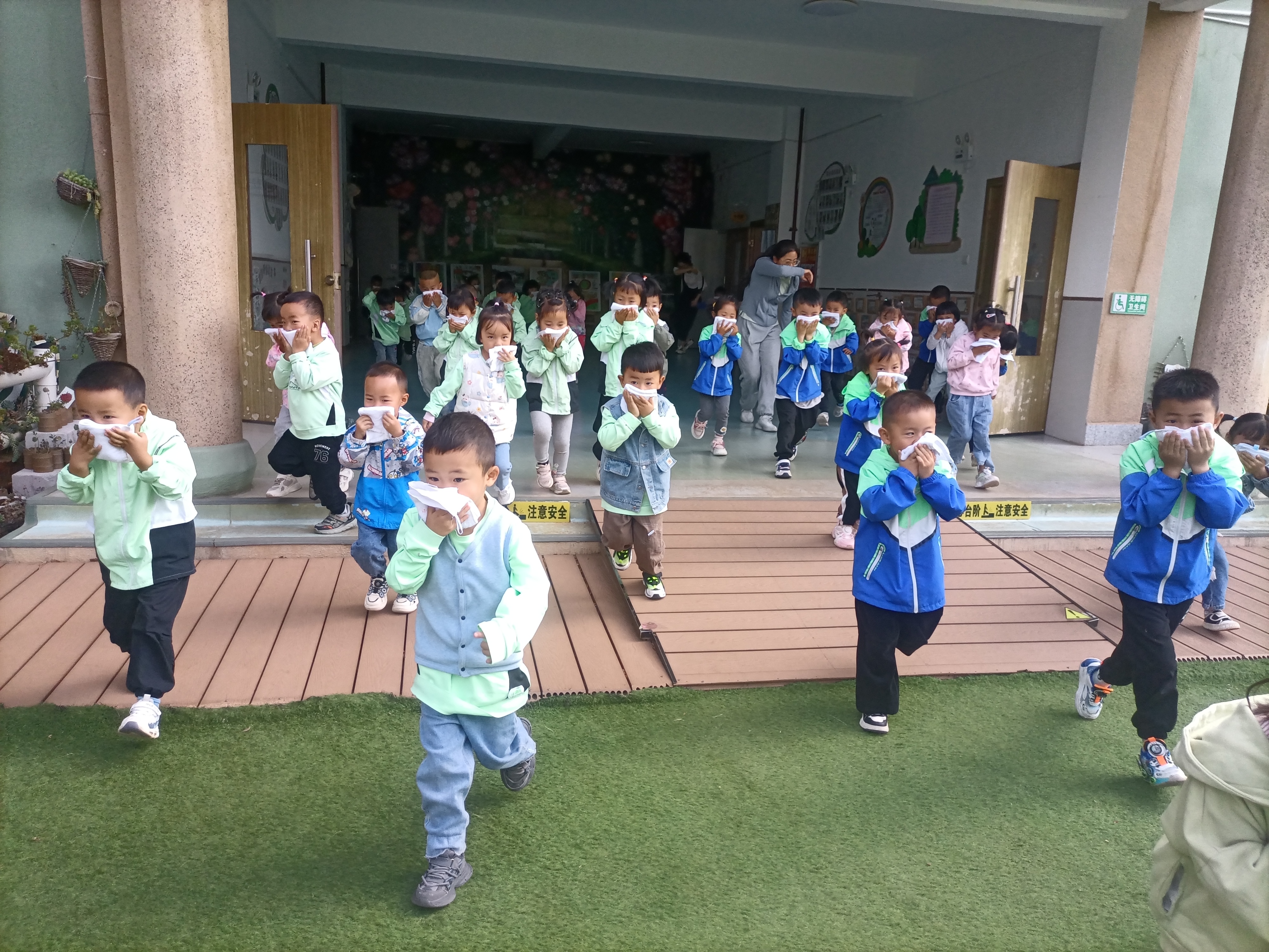 在疏散演练中,随着紧急警报声的响起,老师们引导小朋友们拿起湿毛巾,捂住口鼻,弓着身子,俯身弯腰按照紧急预案的疏散线路从教学楼两侧楼梯迅速有序撤离至安全地带。与此同时,园内的安全引导员也按照各自岗位安排,迅速赶赴各疏散通道,协助班级老师对幼儿进行疏散和指挥,避免发生拥挤踩踏事故。最后,宣传员对此次安全演练活动进行了总结,并就疏散演练中发现的问题提出了整改意见。