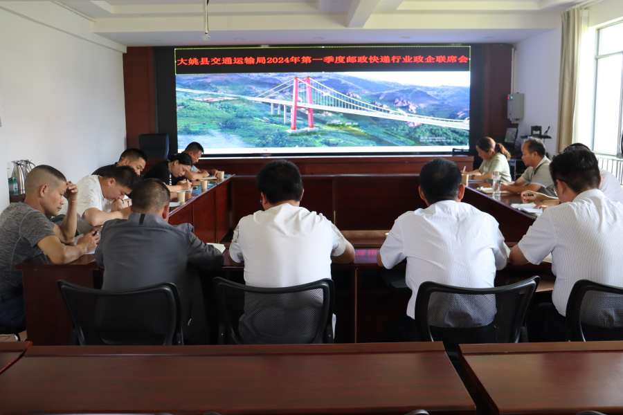 4月25日下午,大姚县交通运输局组织召开了2024年第一季度邮政快递行业政企联席暨客货邮融合发展推进会。中国邮政集团有限公司云南省大姚县分公司、圆通、中通、申通、韵达、极兔、京东、顺丰、德邦快递企业负责人;大姚邮政业安全发展中心全体人员;楚交集团大姚分公司负责人;云南优逸物流有限公司负责人参加了会议。