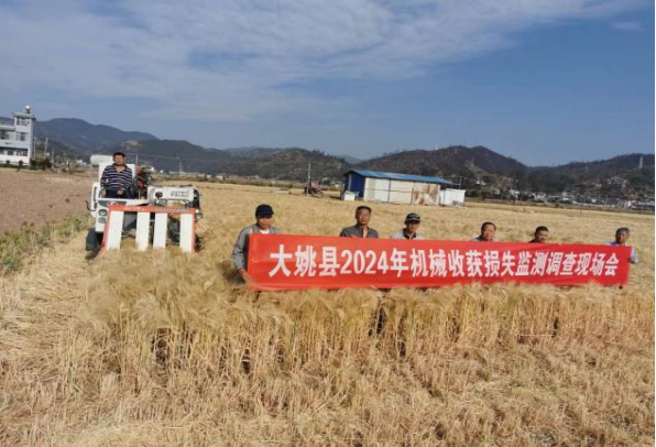 近日,大姚县农机技术推广站在金碧镇席坝村委会粮食机收减损监测点开展了“大姚县2024年机械收获损失监测调查现场会”,现场会上大家对稻麦联合收割机进行了机具和机收作业田块检查,并完成试割、机具调试、田间作业进行路线规划、作业速度等机收技术教学交流;通过对随机抽查的3个小麦、4个大麦取样点现场实测,小麦机收损失率为1.01%,大麦机收损失率为1.08%,均低于农业农村部“小麦全喂入联合收割机作业质量标准”中1.2%的机收损失率,该监测点作业质量符合要求。