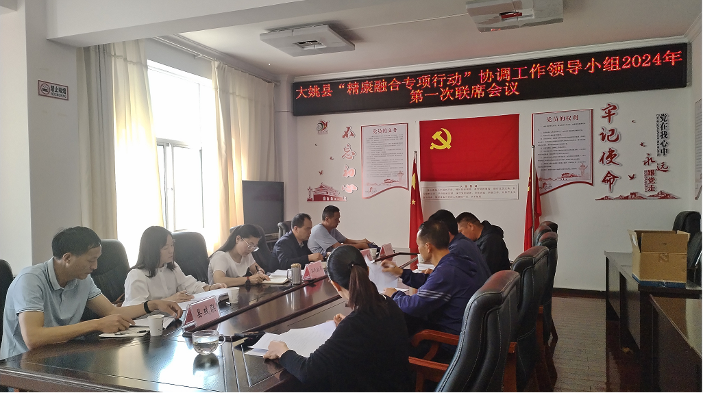 为深化以精神障碍服务对象为中心的服务理念,及时发现并解决“精康融合专项行动”工作推进中存在的问题,2024年5月22日,大姚县召开“精康融合专项行动”协调工作领导小组2024年第一次联席会议。领导小组各成员单位分管领导和联络员参加会议。