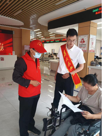 近日,李女士驾驶无障碍车辆到大姚县政务服务中心申办廉租房审核盖章,当他刚来到大厅门外时,志愿值守员和导办咨询台帮办代办员看他行动不便,立即主动将其引导到大厅,并询问其需要办理事项。在得知李女士申办廉租房审核时,志愿值守人员和帮办员立即将其安顿在一楼大厅等候,并分别到三楼住建窗口,一楼交警、不动产登记中心、医保、公安户籍窗口帮其申办审核,约30分钟后就将五部门审核签批意见和盖章申请表交到了李女士的手中。