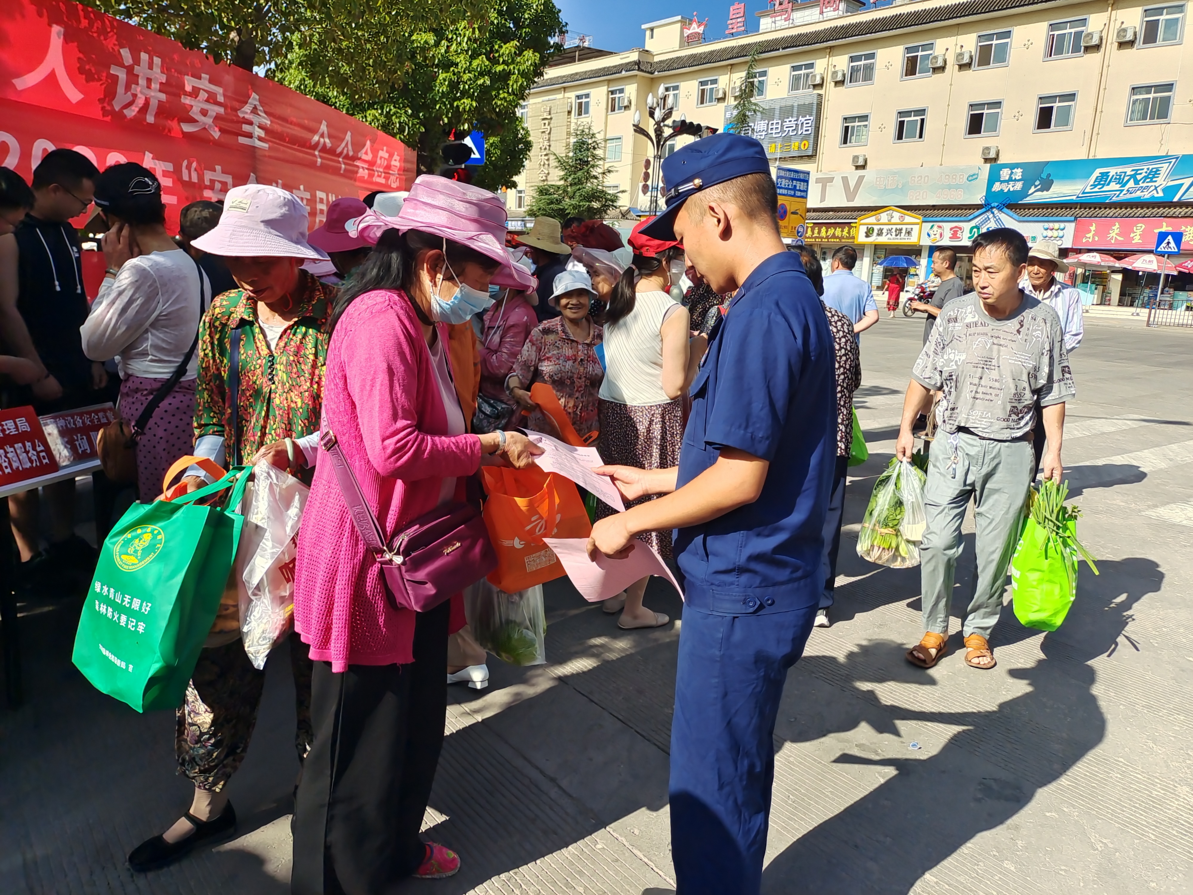 摆摊设点讲常识。深入“农村大集”“市民广场”等人流量大的场所开展消防安全宣传咨询活动,现场设立消防常识宣传展板区和消防安全知识咨询台,向广大群众讲解如何正确拨打报警电话、家庭火灾隐患如何排查整改、初期火灾如何逃生自救等消防安全常识,并针对夏季火灾、溺水事故多发等特点,讲解夏季防火灭火及防溺水的安全知识,切实提高群众的消防安全意识以及应对突发事件的防范和自救能力。