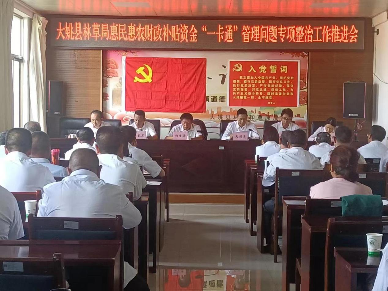 为高质量开展好集中整治群众身边不正之风和腐败问题,纵深推进“清廉大姚”建设,巩固提升“小切口”整治民生领域突出问题“惠民行动”,近日,大姚县林草局召开惠民惠农“一卡通”问题专项整治工作推进会,旨在推动群众身边腐败和不正之风的“大整治”,持续深入开展惠民惠农财政补贴资金“一卡通”专项整治工作。局班子成员、机关全体干部职工60余人参加会议。