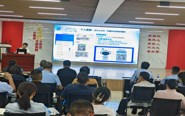 大姚移动在网络安全宣传周之际,通过开展培训、邀请专家开展专题讲座等形式,提高电信从业人员解决常见网络安全和防范诈骗问题的能力。活动期间,发送公益短信30余万人次,在公司内部组织“网络安全为人民,网络安全靠人民”专题宣传活动,设立反诈骗咨询台,推广“国家反诈中心”APP。在营业厅内液晶屏播放宣传视频,发放宣传折页,营造了浓厚的宣传氛围,广大群众积极参与,活动反馈效果良好,有效提升了群众网络安全意识和技能。