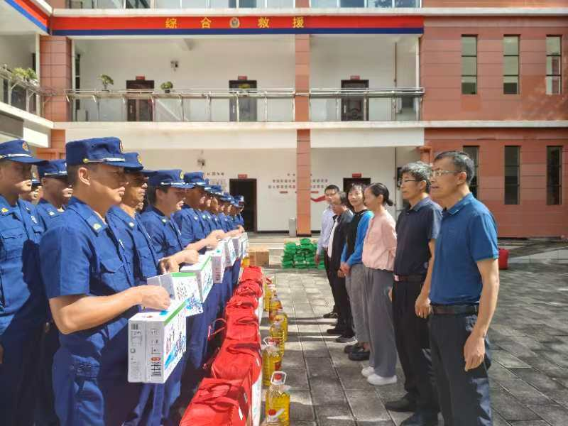 在佳节来临之际,大姚县开展对值守国庆的救援人员的慰问,县总工会、县应急管理局班子成员购买生活物资,在大姚县综合应急救援队驻地将物资发放给救援人员。