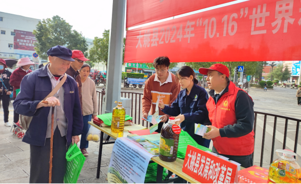 每年的10月16日是“世界粮食日”,“世界粮食日”所在的周是全国粮食安全宣传周。今年是中华人民共和国成立75周年,是实现“十四五”规划目标任务的关键一年。为全面贯彻党的二十大和二十届二中、三中全会精神,深入实施国家粮食安全战略和乡村振兴战略,健全粮食和食物节约长效机制,2024年10月16日上午,县发展改革局牵头县农业农村局、县教育体育局、县妇女联合会、县机关事务服务中心、县粮食储备有限公司在大姚县金碧镇永盛农贸市场外共同组织开展大姚县2024年世界粮食日和全国粮食安全宣传周暨涉粮执法普法集中宣传活动。