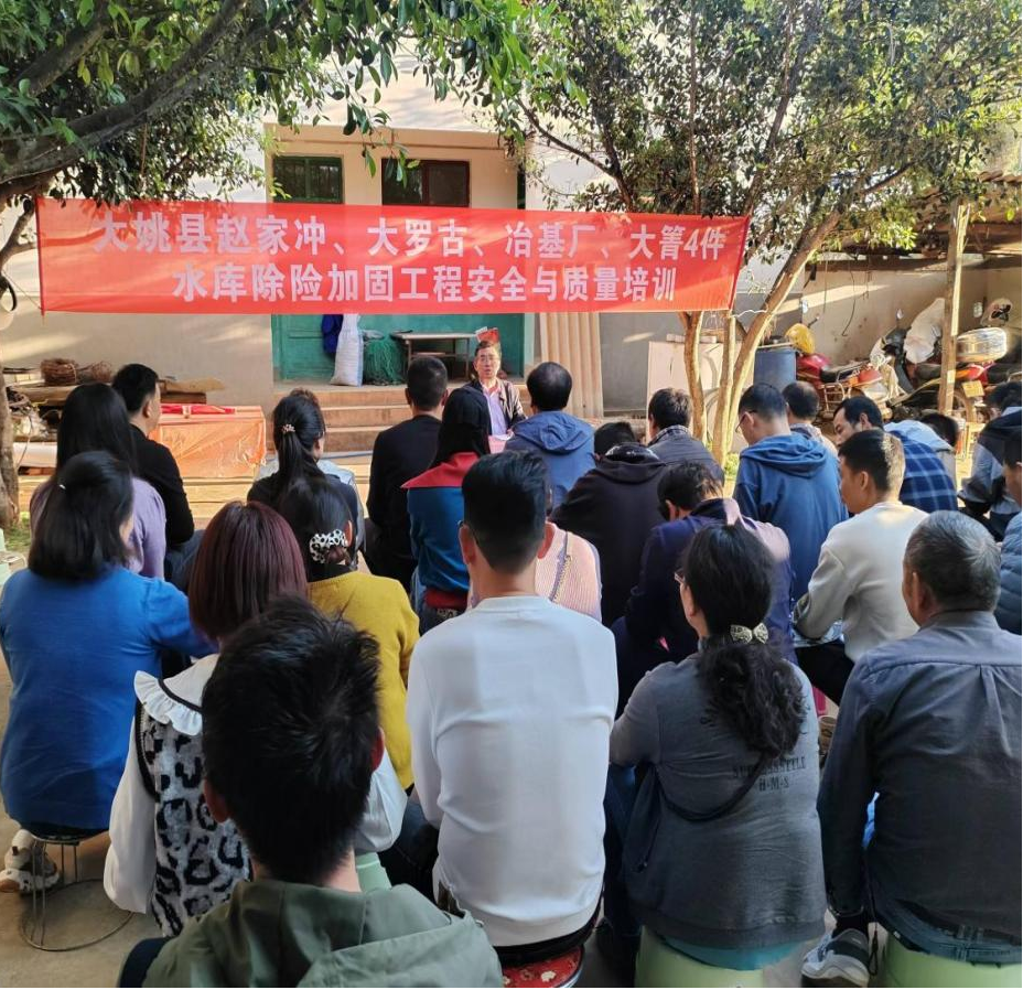 为确保大姚县赵家冲、大罗古、大箐、冶基厂4件小(1)水库除险加固工程在施工过程中不发生安全与质量事故。近日,大姚县赵家冲、大罗古、大箐、冶基厂4件小(1)水库除险加固工程建设指挥部在龙街镇赵家冲水库施工现场组织开展安全与质量培训,项目法人、施工、监理、设计、质量检测等9家单位共40余人参会。
