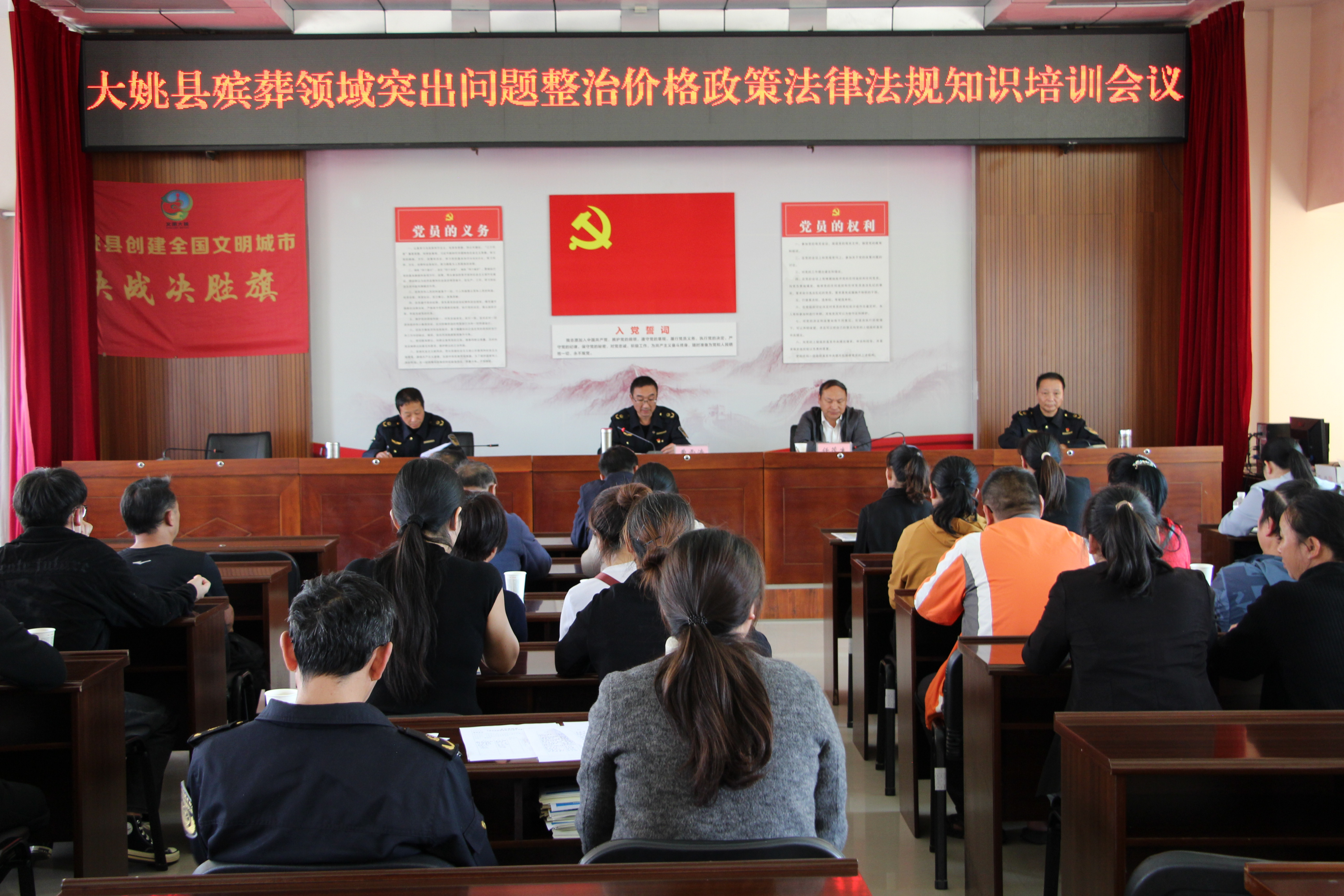 在殡葬领域突出问题专项行动中,我局会同民政部门召集四个乡镇从事殡葬行业的企业负责人59人进行集体约谈和法律法规宣传,会后免费向经营户发放价格标签335份,有效整治了殡葬领域的不正之风,保障了消费者合法权益不受侵害,为广大人民群众营造一个安全放心的消费环境。