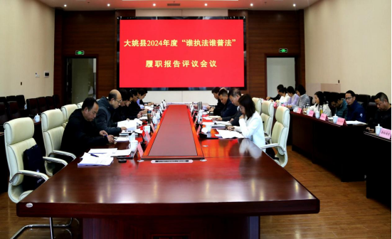 这是我县首次组织开展国家机关“谁执法谁普法”履职报告评议活动,对州生态环境局大姚分局、县教育体育局、县市场监管局、县卫生健康局、县应急局5家部门进行现场评议。会前,被评议单位对照履职报告评议指标认真开展自查自评后形成年度履职报告,并按程序在“大姚政法”微信公众号上进行公示。会上,组织学习了《大姚县国家机关“谁执法谁普法”履职报告评议活动实施办法》,5家被评议单位汇报年度普法履职情况,会议邀请人大代表、政协委员、普法工作者、新闻媒体代表、律师代表等组成的9人评议团进行现场点评和评分,被评议的5家单位进行自评互评打分。