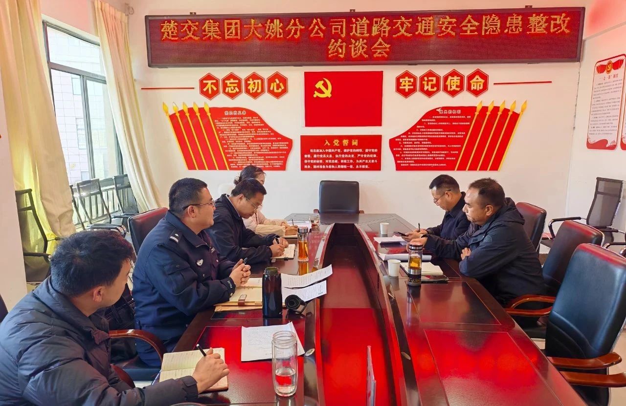 为全力维护岁末年初全县道路交通安全形势稳定,进一步增强客运企业安全生产主体责任,筑牢客运企业负责人安全责任意识,预防和减少涉运输企业道路交通事故的发生。12月17日上午,大姚县交通运输局、县公安局交警大队对楚交集团大姚分公司负责人开展冬季客运安全专题警示约谈会。