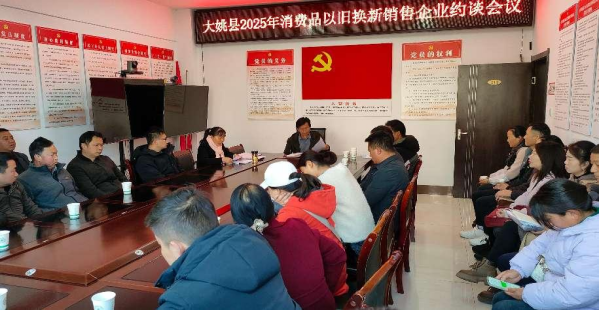 2025年2月19日,大姚县工业信息化商务科学技术局组织召开全县消费品以旧换新活动约谈会,进一步规范家电、家装和电动自行车、3C产品等消费品以旧换新活动市场秩序,严格要求企业明码标价,严禁价格欺诈,切实保障消费者的合法权益,会议共计35人参加。