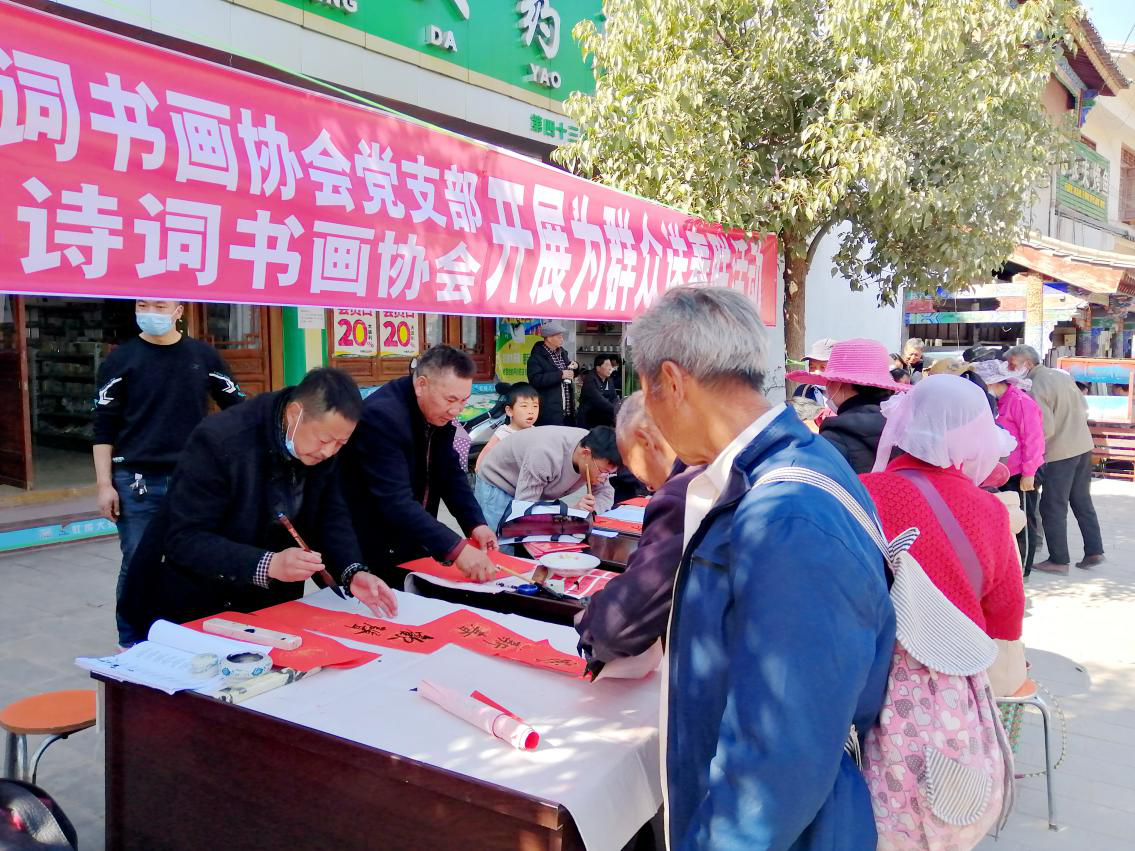 “送春联、写福字,这样的活动太有意义了,虽然我们在烈日下站着写了三个多小时的春联,累得直不起腰,但看到老百姓拿到春联后的高兴劲,我们也不觉得累了。”石羊诗词书画协会会员范国培笑着说。