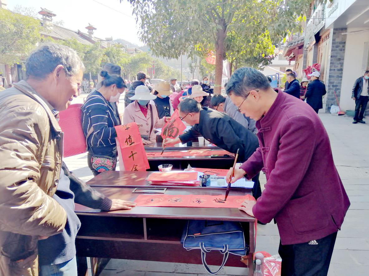 春节前夕,石羊镇组织文化志愿者开展“文化进万家—新春送春联”活动,受到当地老百姓欢迎。