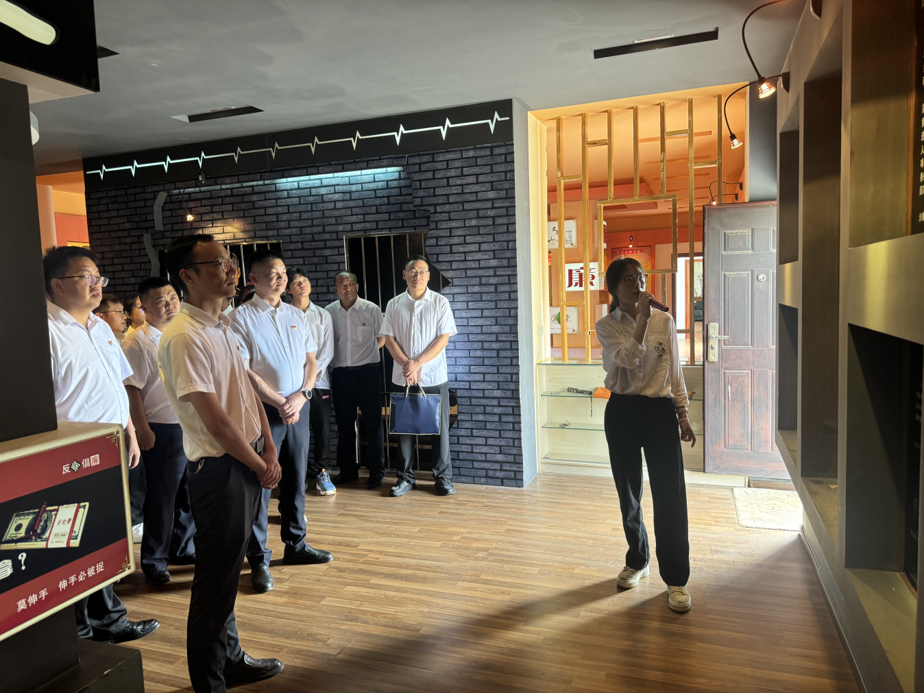 在大姚县看守所现场,全体人员在看守所所长引导下,实地参观监区AB门禁系统、收押登记区、监控指挥中心等区域,全面了解在押人员行为规范及日常管理制度。通过近距离观察高墙电网内的监管环境、标准化生活制度执行情况,直观感受违法犯罪后失去人身自由的沉重代价。通过典型案例解说,展现涉案人员身份地位转变的强烈反差,深刻剖析违纪违法行为对个人发展、家庭幸福和社会形象的毁灭性影响,使全体人员切身体会纪法威严,进一步强化“不敢腐、不能腐、不想腐”的思想自觉。