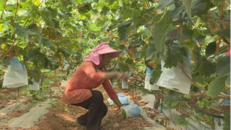 目前,该基地阳光玫瑰种植面积达20亩,拥有38个标准化大棚,一年的产量约35吨,亩均利润达2万至3万元。产品凭借果肉紧实、风味独特的特点,深受收购商青睐,地头价稳定在每斤15元左右,远销省内外市场。