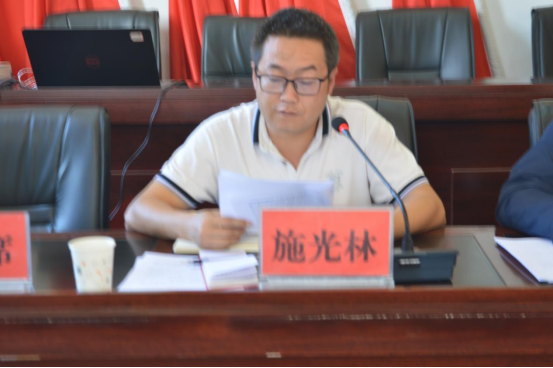 (图为镇党委副书记施光林同志传达工作部署会议精神)