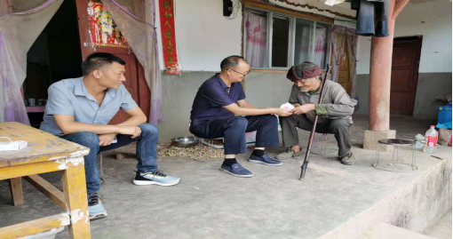 (图为镇党委委员、人大主席李树江同志慰问困难老党员张景胜)