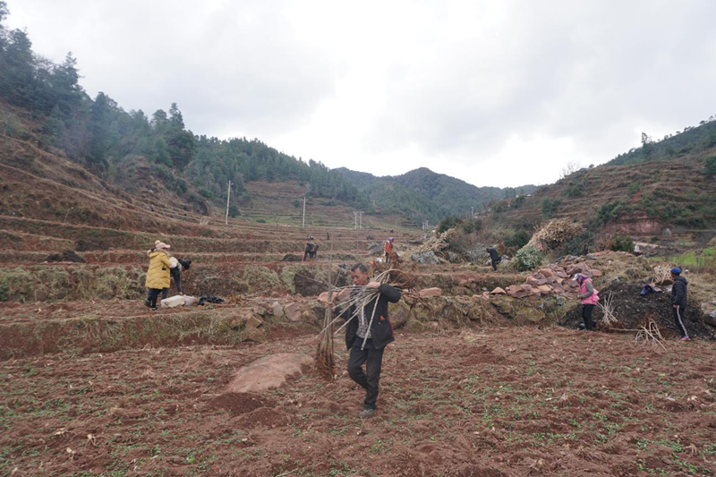 正值大寒节气,在海拔2500多米的昙华乡子米地村拉乍们,村民们忙碌栽种的身影在毛毛小雪中显得更加美丽,山坡上种植的车厘子果苗已连亩成片。