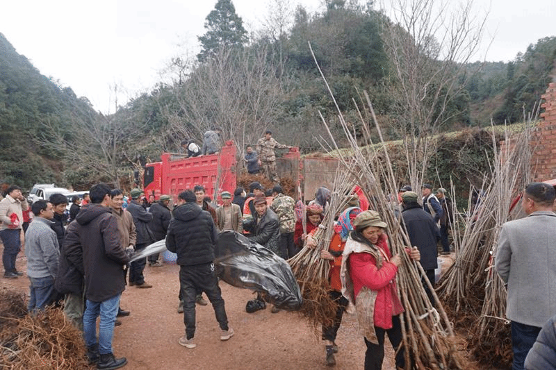 现场会上对车厘子果苗、薄膜等进行了分发,村民在技术员的指导下积极参与学习种植技术。