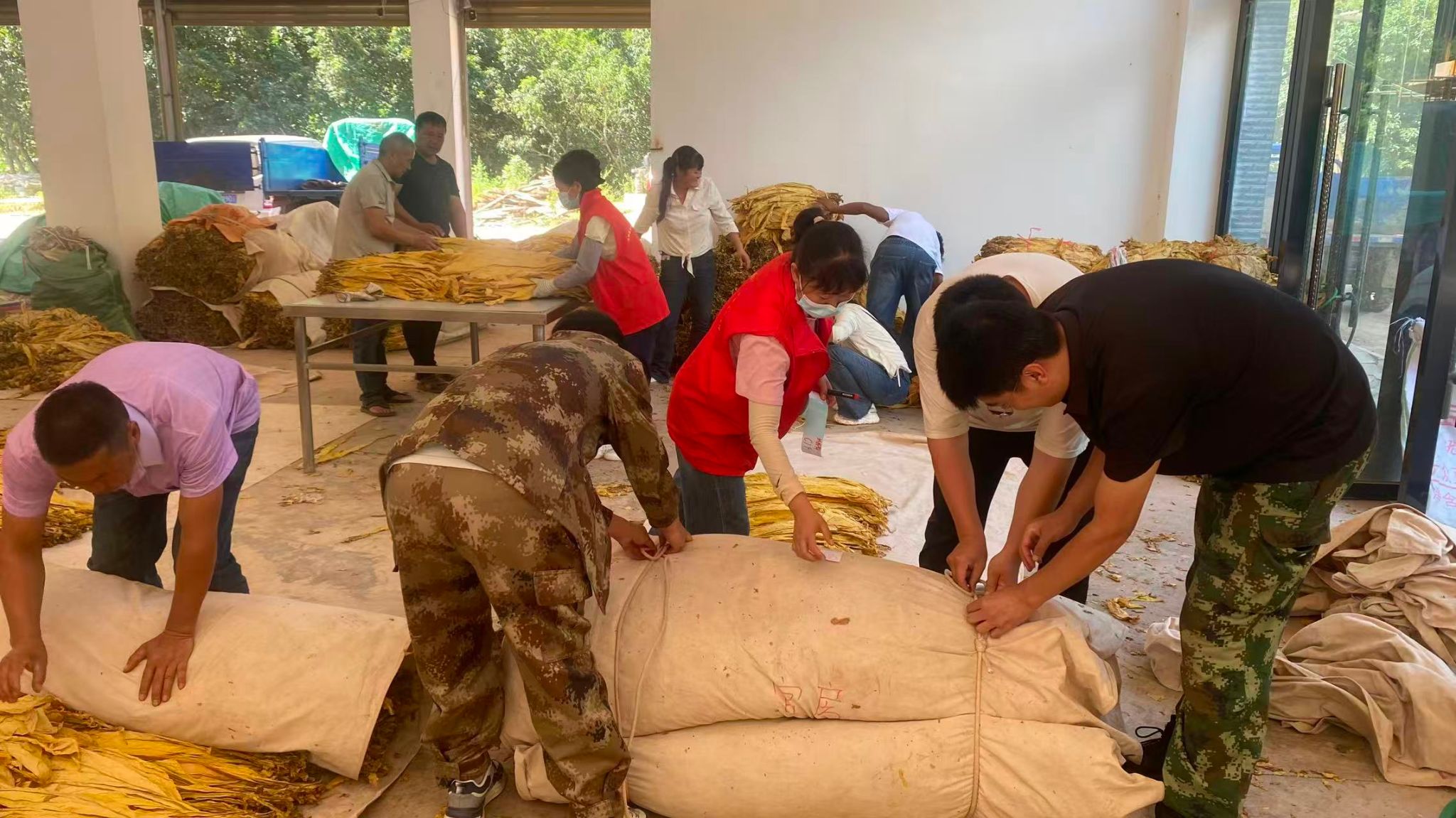 做精“交售服务”,畅通收购渠道。在全镇设置2个烟叶收购点和3个验级打包分拣点,实行“约时定点、集中分级、集中运输、代表交售”机制,避免扎堆排队。组织90余名镇村干部,在每个收购站内协助烟农分拣、打包,引导烟农完成登记、评级、过磅、结算全流程。针对近期集中降雨对烟叶转运造成的影响,镇村集中力量及时清理塌方、滚石路段,累计出动人员253人次,清理滚石土方约150m³,全力保障烟农烟叶顺利交售。