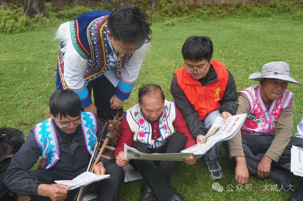 深秋初冬,午后的大姚县昙华乡千柏林笼罩在灰色的云层下,微风中已带着寒意。然而这片林子却因一群特殊学习者的到来显得格外温暖——州县乡三级人大代表和群众代表身着绚丽的民族服装,共同开展《习近平谈治国理政》第五卷和党的二十届四中全会精神专题学习。本次活动旨在深入学习领会习近平新时代中国特色社会主义思想最新成果,及时准确把握党中央决策部署,不断提升人大代表的政治理论素养,强化对人民群众的教育引导,推动党的创新理论在基层落地生根。