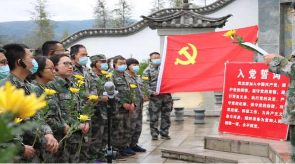 从志愿加入中国共产党的那一天起,赵祚传烈士就以党的事业为导向,积极谋划、无私奉献;生前数次被捕入狱,却始终坚定共产主义信念,严守党的纪律、保守党的秘密;死前,更是自作挽联——“有儿有女亡,论寿算,不为命短;半凭半吊死,享福泽,可比高年。横批:死得其所。”慷慨赴死。他用26岁的生命书写了入党宣言,告诉了我们每一个共产党员什么是共产党,怎样才算一名共产党员。在烈士墓前、在赵祚传烈士的注目下,大家庄重地举起右手,面对党旗,一字一句宣读入党誓词,铿锵有力的声音响彻了整个陵园。