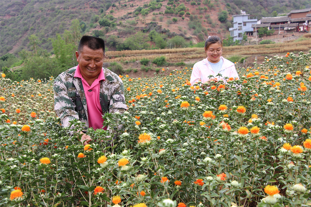 在荞苴村的带动下,2022年,三岔河镇9个村均种植了滇红花,种植面积达4236亩,预计产值可达1900余万元,成为三岔河镇的又一支柱产业,也成为远近闻名的“致富花”。