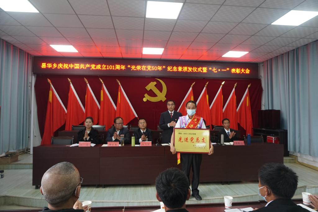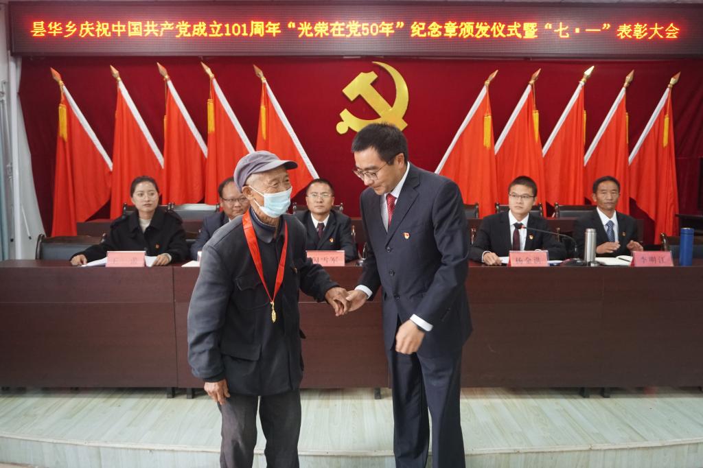 乡党委邀请党龄50年以上的老党员代表参加大会,并由乡党委书记李瑛正为其颁发“光荣在党50年”纪念章。