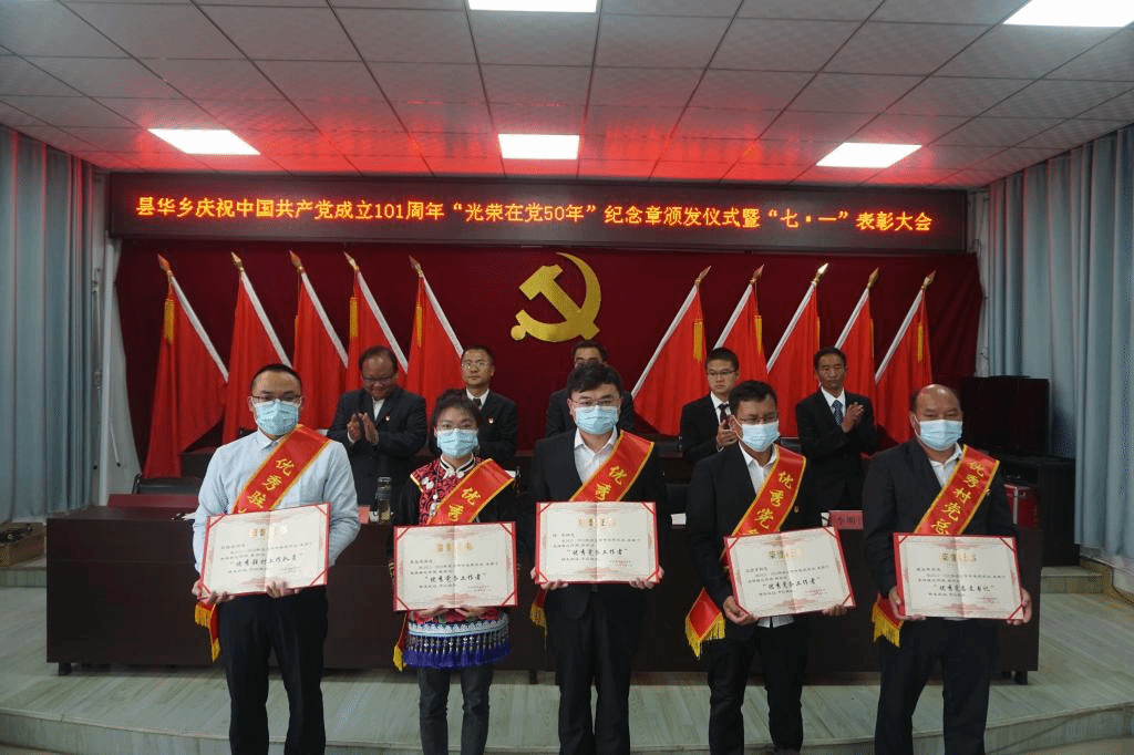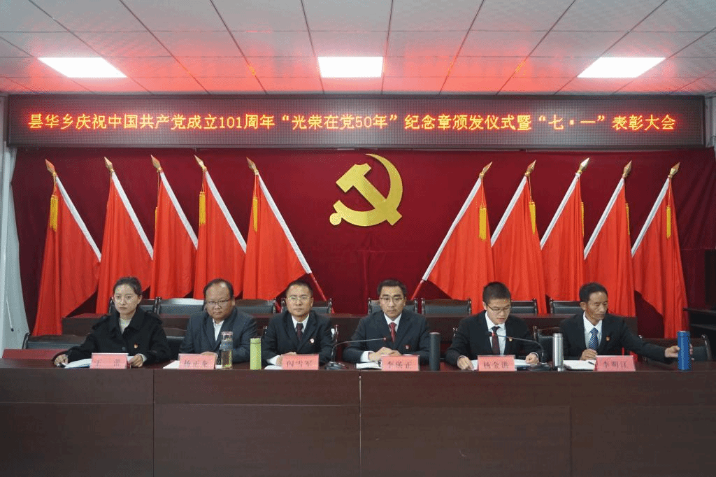 6月30日下午,昙华乡举办了庆祝中国共产党成立101周年“光荣在党50年”纪念章颁发仪式暨“七·一”表彰大会。全体干部职工,各村党支部书记、副书记,驻村第一书记,以及受表彰的优秀共产党员、先进基层党组织负责人、获得纪念章的老党员共98人参加了会议,会议由乡党委副书记、乡长杨金洪同志主持。