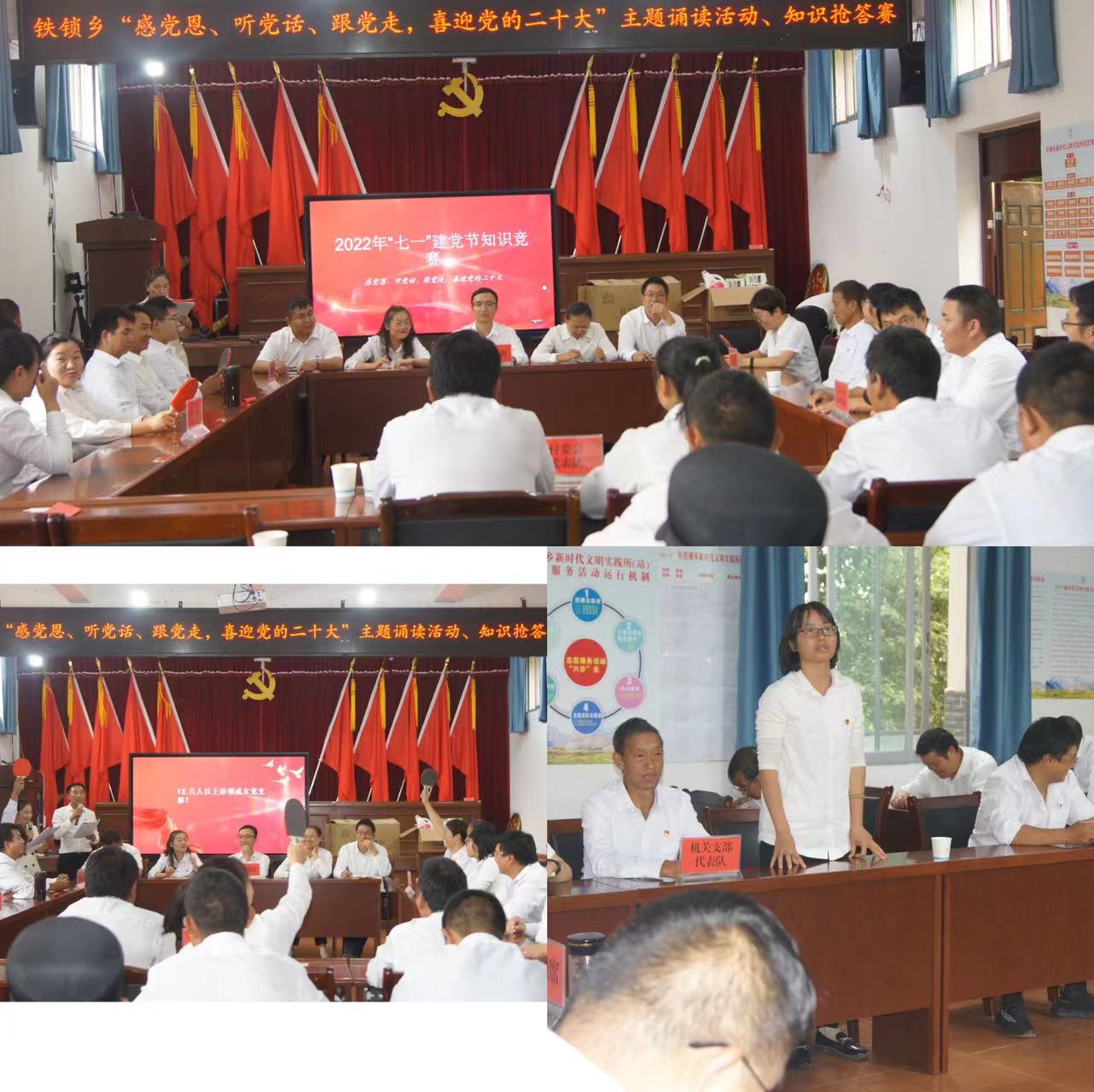 朗诵结束后,举行知识竞赛,活动中选手们反应敏捷,奋勇争先,上演了一场勇气与智慧的较量,充分展现了扎实的党史党务知识功底和昂扬的精神面貌。