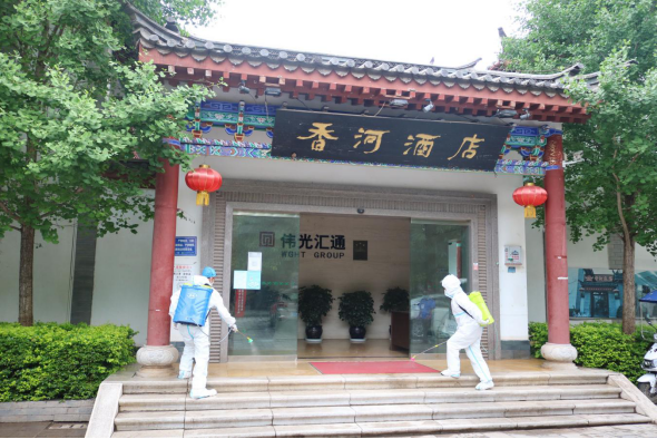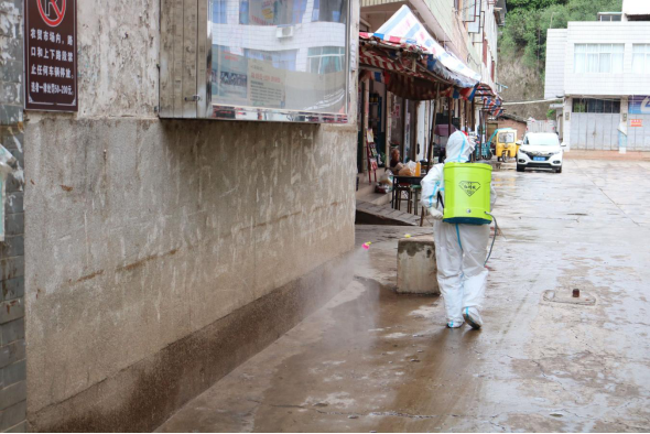 消杀中期细致入微。全镇相关重点人流密集区域较多,如车站、学校、卫生院、酒店、景区(龙女牧羊广场、游客接待中心、晒盐篷、孔庙等),对此消杀人员针对重点区域反复消杀,聚焦重点区域开展系统性、整体性消杀。各组消杀队伍为确保消杀不留死角,对酒店前台、景区售票处、车站门把手、扶手、洗手间、等常接触区域进行多次消毒药水喷洒,重点区域按往常消杀频次大多每日两次,公厕等相对密闭的场所会适当增加消毒次数。此外全镇进一步压实责任,加强对周边商铺、小型商超、菜市场、机关企事业单位公共场所等环境消毒工作。