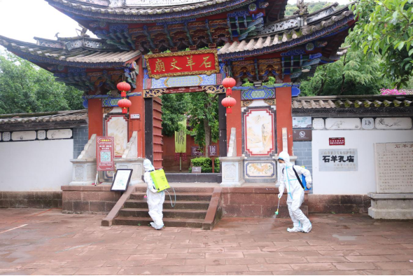 大姚县石羊镇是国家4A级旅游景区,依托“滇国盐都”“祭孔圣地”等响亮的招牌,每年都吸引了无数的游客纷至沓来。但在党的二十大即将召开和疫情形势仍然严峻的当下,外来人员较多和人流密集成了维护全镇防疫安全的薄弱环节。为全面做好疫情防控和维护安全稳定工作,为给全镇人民群众和外来游客一个和谐善美的景区环境,为迎接党的二十大胜利召开营造良好政治社会环境,6月6日一早,镇党委、政府组织镇卫生院员工及部分镇区干部及时开展大消毒工作,对全镇景区周围及公共环境进行了全面的消毒。