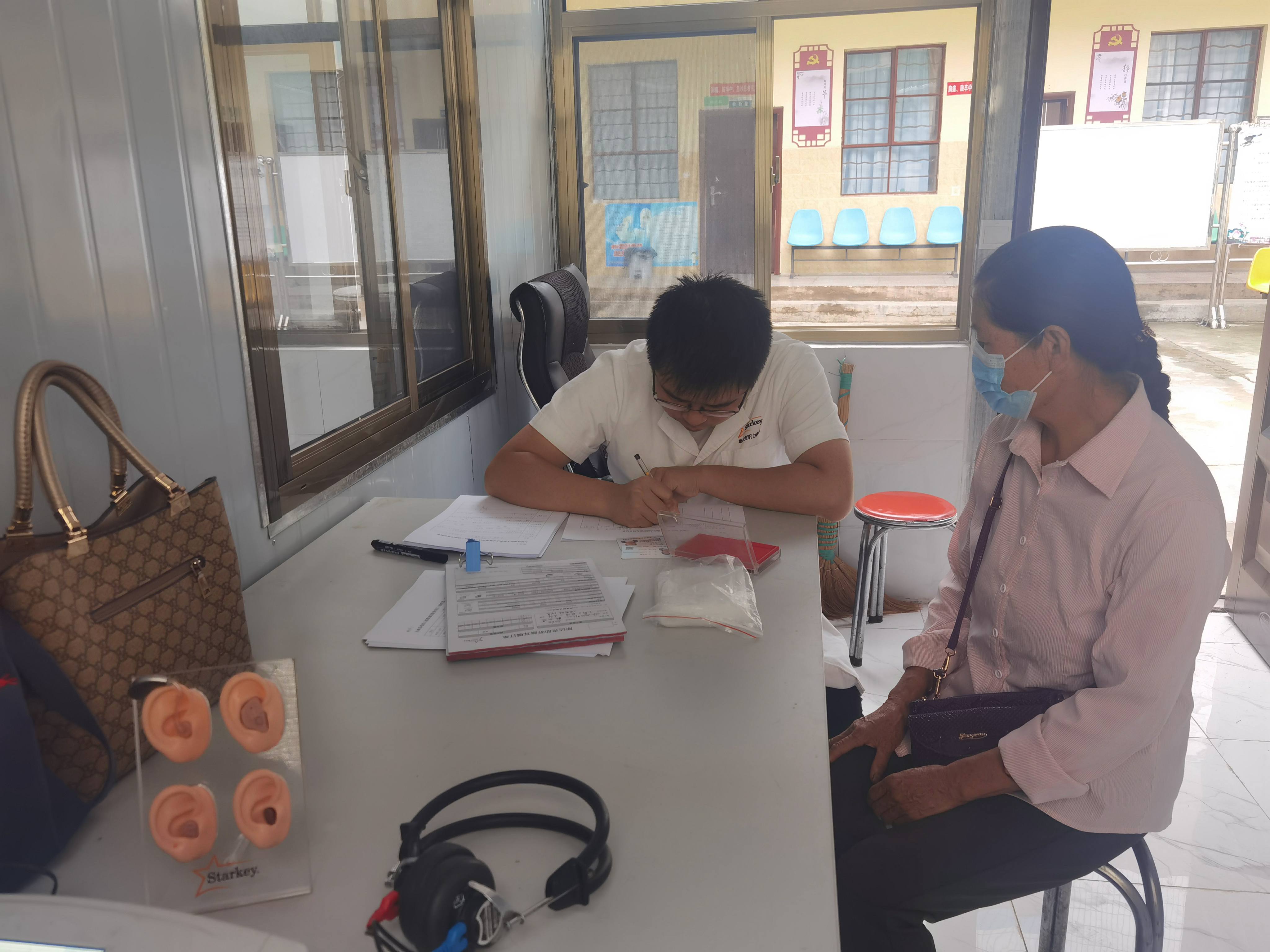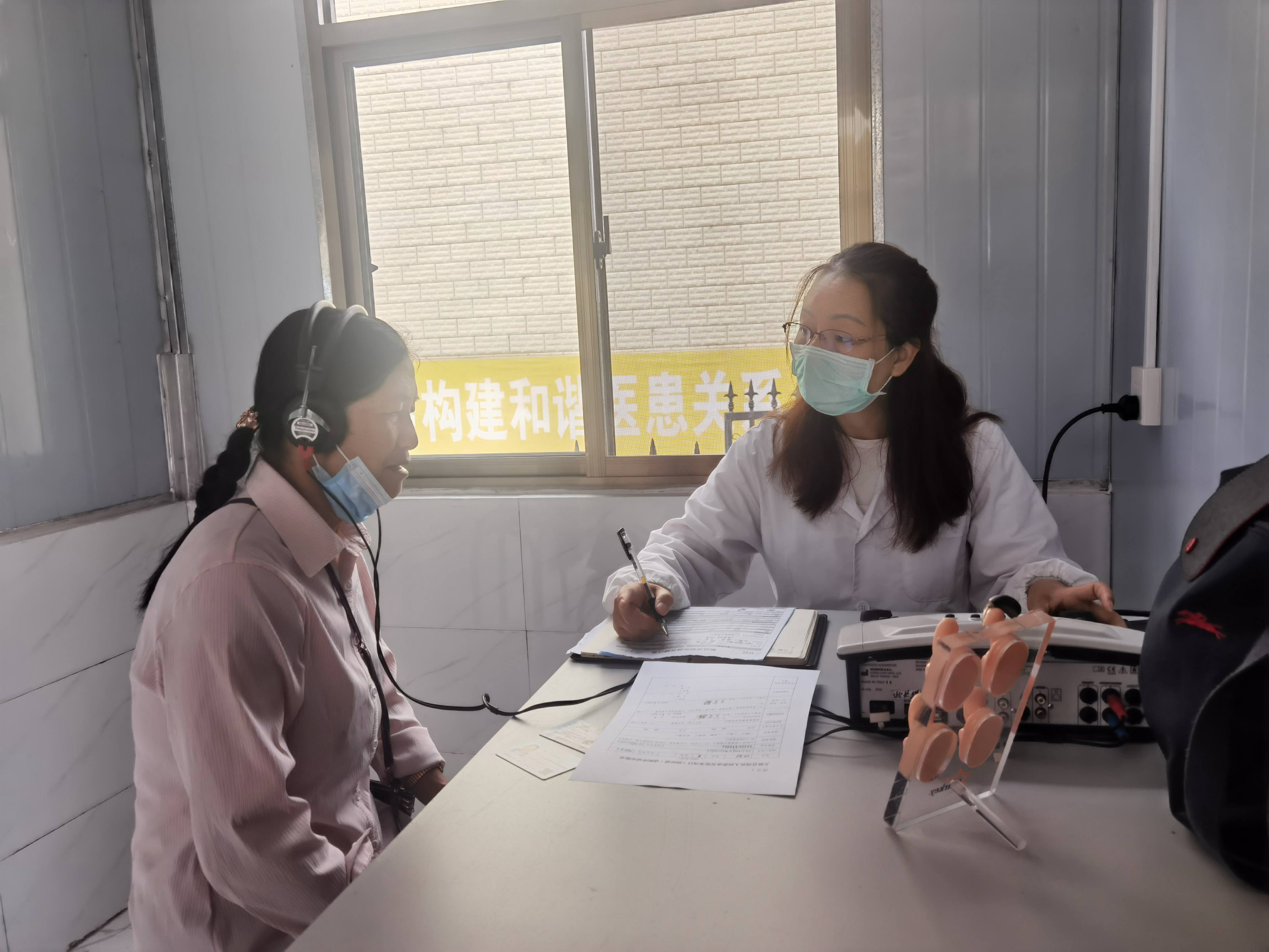 “‘阿妈,和你说话太费气了’,这是我的独生女和我说的话,自此她就没和我通过电话,每次她打电话给她阿爹,我都只能在旁边偷偷地伤心,我三岁的时候摔到耳朵,就听不清了,今天我特别高兴,医生说给我减免1000元,我再自费点钱,给我配两个助听器,我就可以和女儿通话了,谢谢你”一个五十多岁的老阿妈含着眼泪,拉着工作人员的手说。