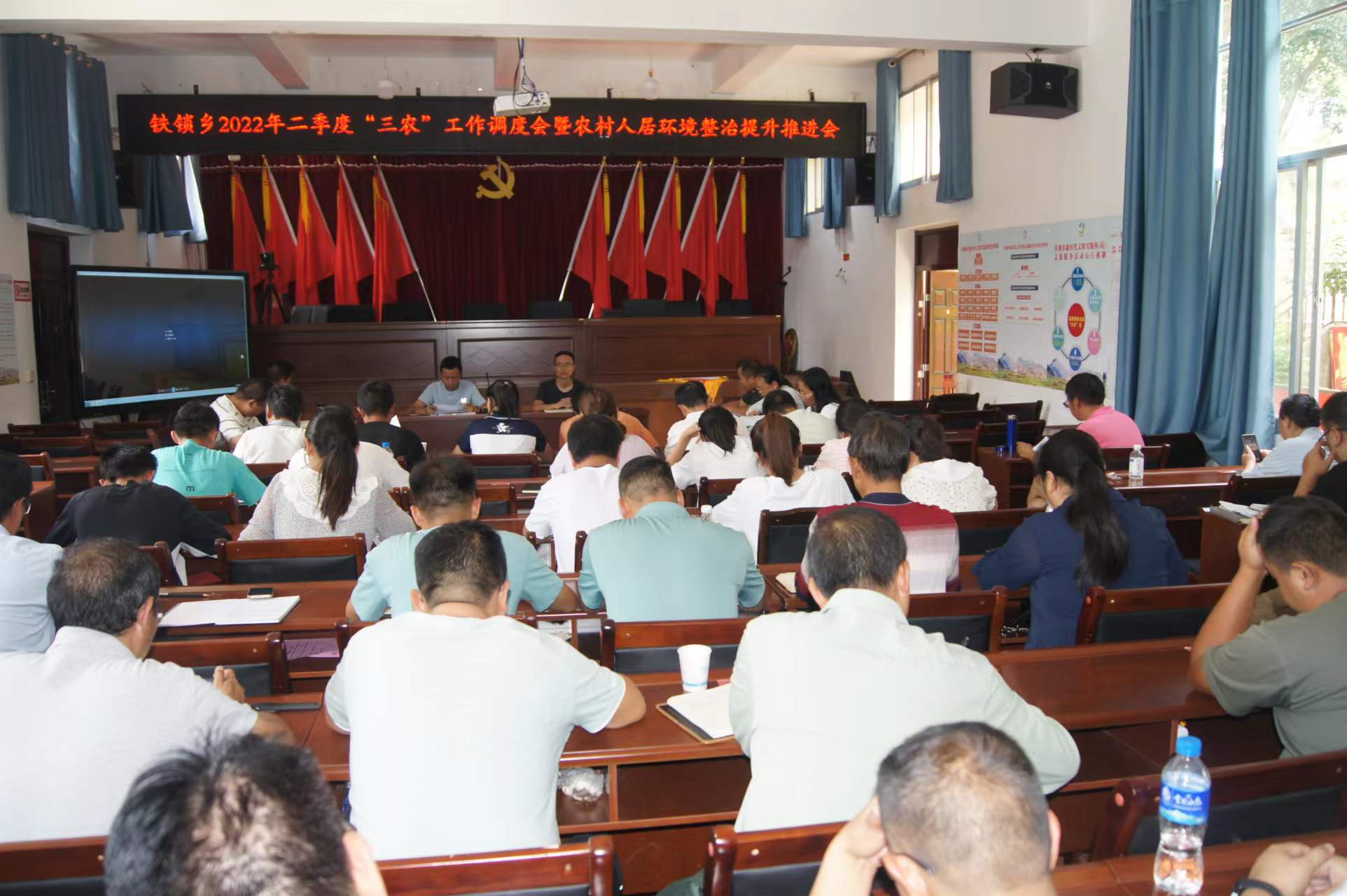 参观结束后在乡政府大会议室召开2022年二季度“三农”工作调度会暨农村人居环境整治提升会议。会上观看了大姚县人居环境提升曝光片,同时颁发了二季度六个村人居环境提升红黄旗。