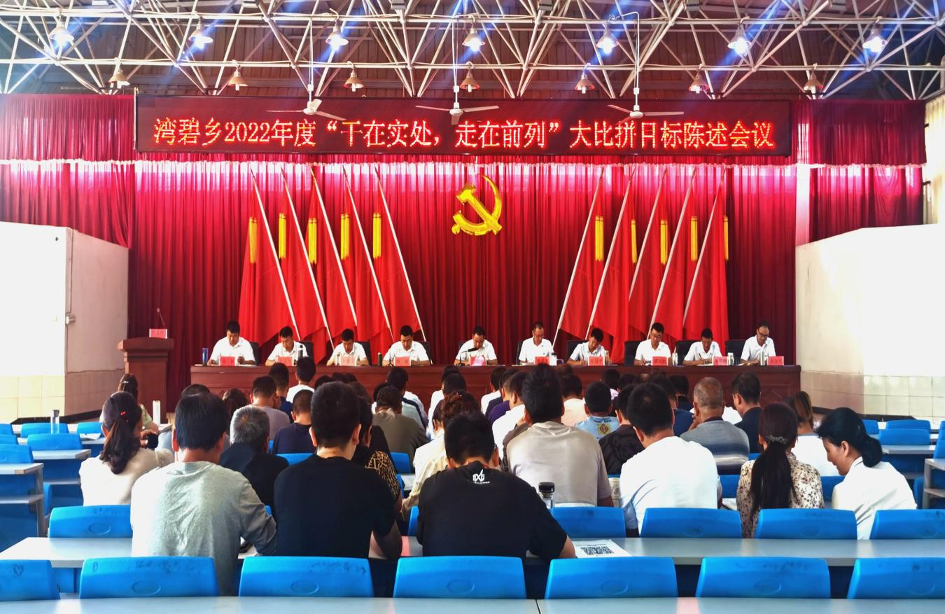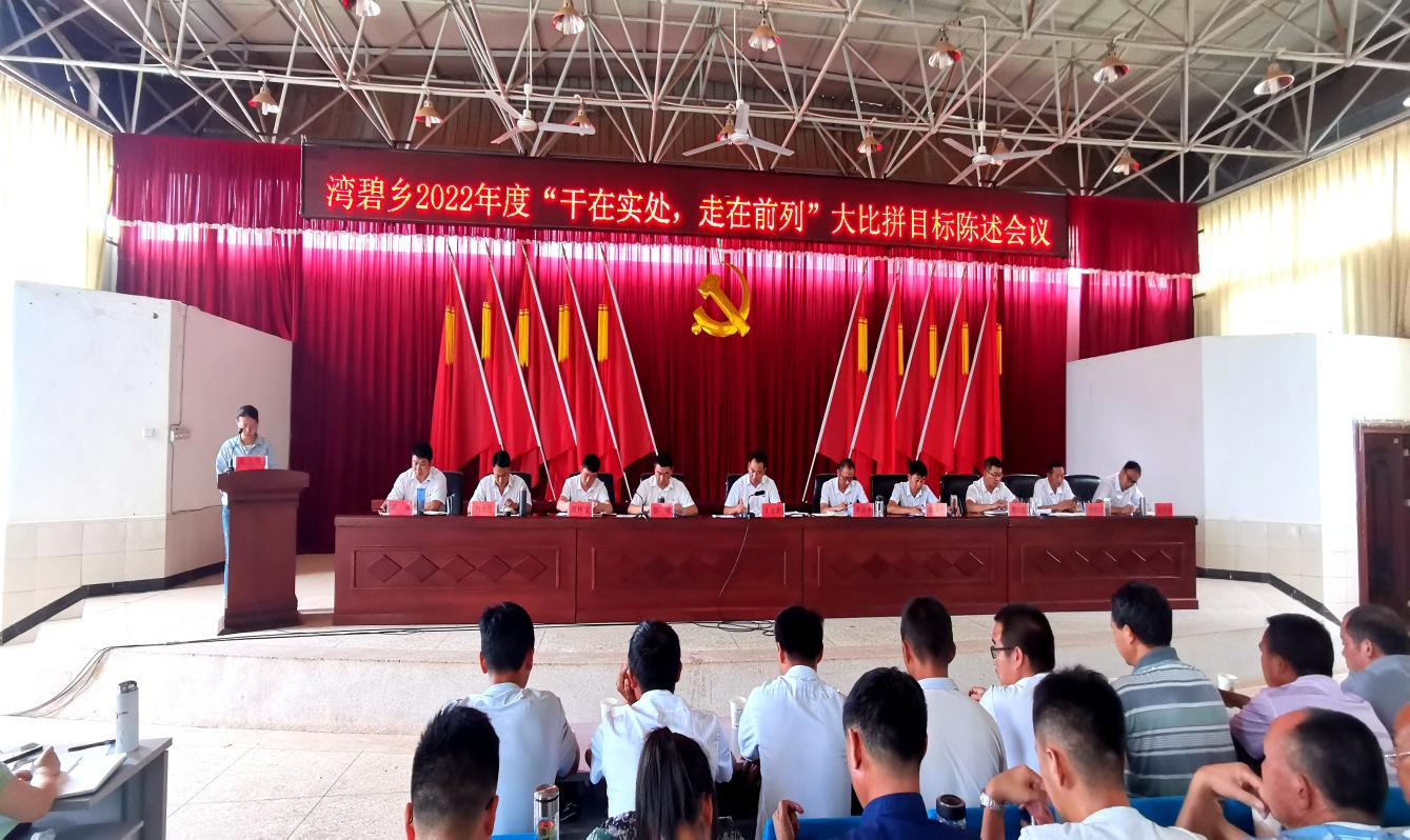 2022年6月11日,湾碧乡召开2022年度“干在实处,走在前列”大比拼目标陈述会议。乡党政班子成员,村(社区)党总支书记、村委会主任,乡机关全体干部职工60余人参加会议。会议由乡党委书记王定彪同志主持。