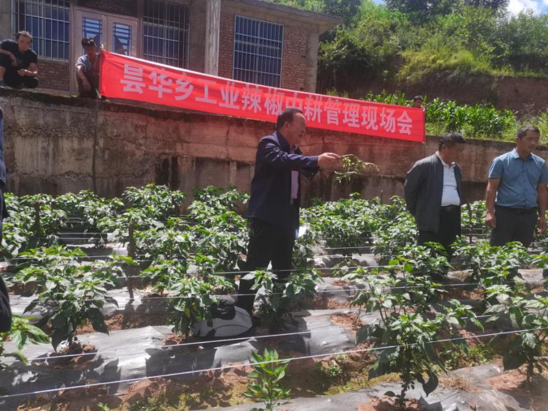 时下,昙华乡的工业辣椒进入生长旺盛期,正是辣椒病虫害防治的关键时期,为提高种植户的中耕管理技术,针对现阶段种植户中耕管理中出现的问题,7月26日-7月27日,昙华乡分别在小兴厂和赤石岩村委会工业辣椒地块中召开昙华乡2022年工业辣椒中耕管理现场培训会。乡农业农村服务中心工作人员、村委会三职干部及工业辣椒种植农户合计110余人参加现场培训会。