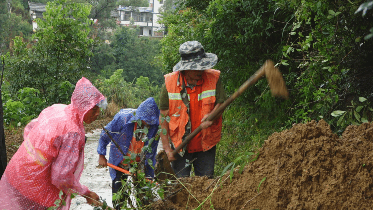 新街镇夏家坝乡村公路沿线,雨水冲刷导致了不同程度的山体滑坡险情,群众出行受阻。村委会立即响应,组织工作人员与群众冒雨抢险,清运公路上的堆积物、疏通排水沟渠。经过数小时连续奋战,道路终于恢复通行,有效避免了二次滑坡风险。