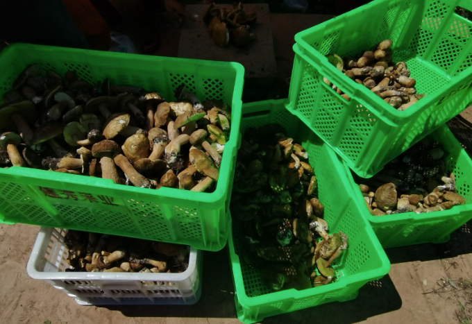 “今年的野生菌比往年多,近段时间主要是牛肝菌和鸡枞,品质也非常好,最多的时候,我每天收购到的新鲜牛肝菌就有2000多公斤,拉到外面的市场上,经常供不应求。”在荞苴村路边收菌的小贩王忠说。像王忠这样到三岔河收购新鲜野生菌的小贩还有三、四十人。