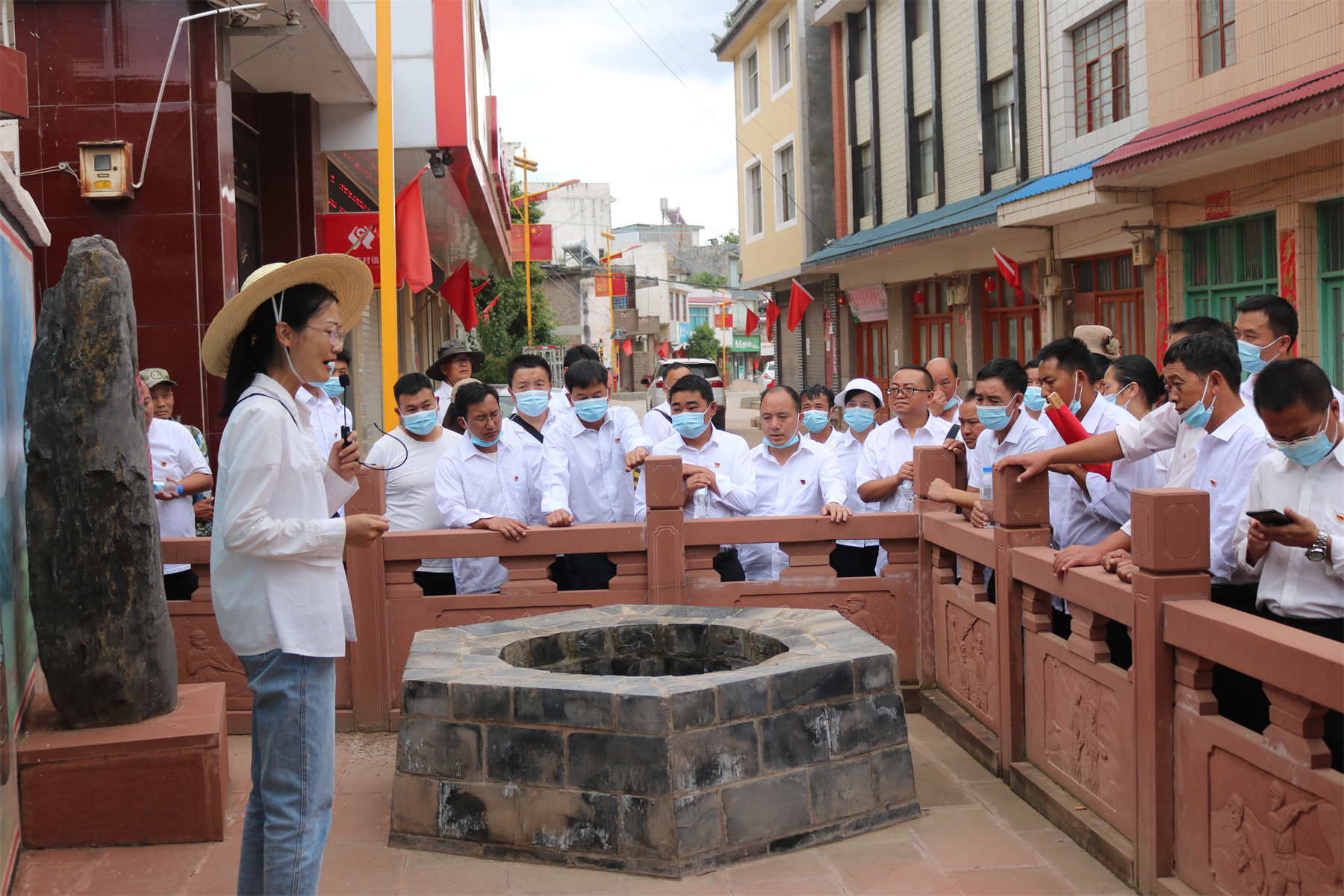 在七街红色教育基地,在解说员的引导下,全体党员干部整装列队、重走长征路,步行前往红星小学门口、红军井、萧克将军指挥所、红色驿站等地,详细聆听《红军井》《一床毛毯表敬意 400银花助红军》《红军赠马表深情》等红色故事,故事虽小但是满含情谊,是红军纪律严明、作风优良、爱护群众的真实写照,大家无不为之动容。